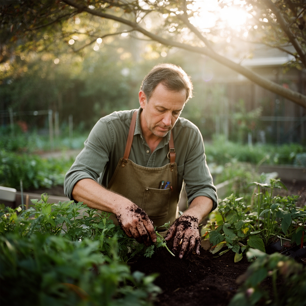 Incorporate 2 inches of finished compost into the top 6 inches of soil. Add 1/4 cup of balanced organic fertilizer per square foot. Ensure soil temperature matches crop requirements: warm-season crops need 60°F minimum, cool-season crops 40°F.